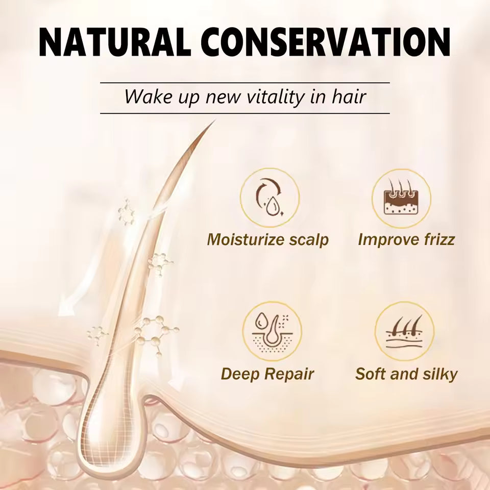 Unleash the full potential of your hair with our Natural Conservation Treatment! Designed to wake up new vitality, this advanced formula moisturizes the scalp, deeply repairs damage, improves frizz, and leaves your hair soft and silky. Experience professional-grade care that nourishes from root to tip for a healthier, more vibrant mane!
