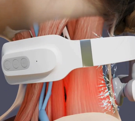 It doesn’t apply deep pressure or movement — it uses gentle EMS, heat therapy, and vagus nerve stimulation, which can help support relaxation and circulation in the area.